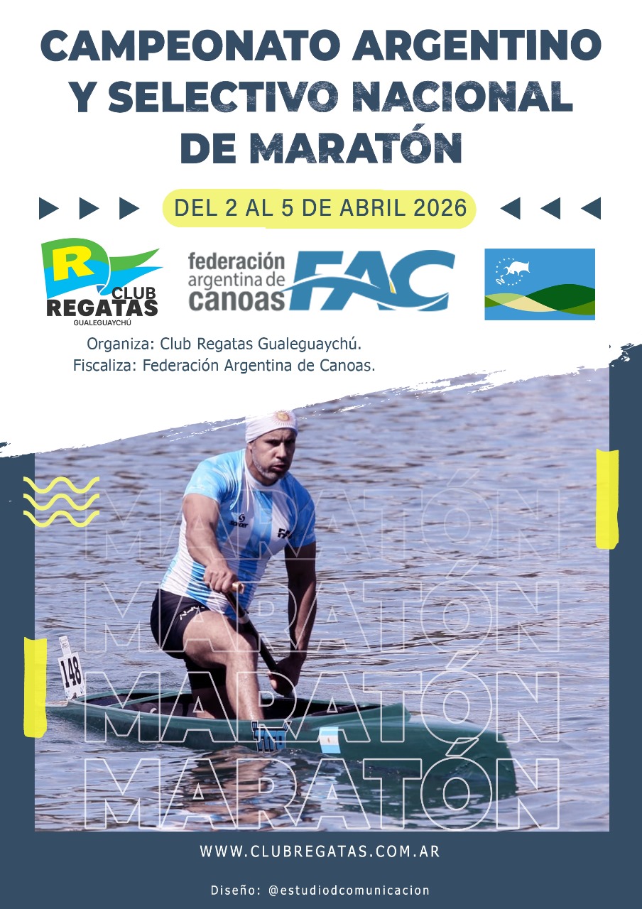 Los invitamos a participar del Campeonato Argentino y Selectivo Nacional de Maratón que se realizará del 2 al 5 de Abril, organizado por el Club Regatas Gualeguaychú